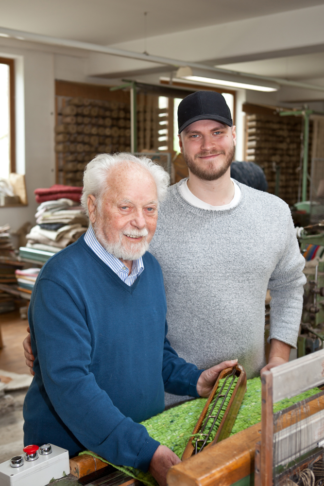 … und heute, wo er sich als gelernter Industriemechaniker u. a. um die Instandhaltung der Webstühle kümmert.