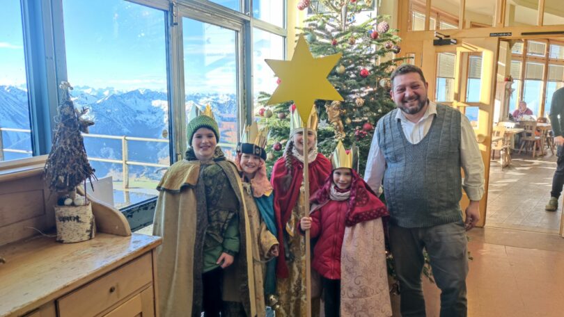 Den sicherlich höchsten Einsatzort des Landkreises hatten die Sternsinger gestern am Wendelstein. Sie brachten Glück- und Segenswünsche fürs Jahr 2024 ins Wendelsteinhaus, wo sie vom neuen Wirt Domenico „Mimmo“ Mossa und seinem Team von der Wendelsteingastronomie herzlich empfangen wurden.