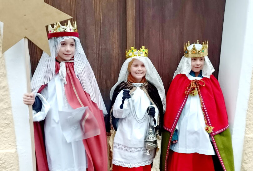 Sieben Könige empfingen Pfarrer Paul Janßen und die Umrathshauser Pfarrgemeinde zum Sonntagsgottesdienst. Bei Wind und Wetter zogen die Buben und Mädchen durch die alte Gemeinde Umrathshausen und sammelten für die Sternsinger.
