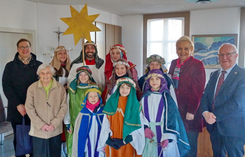 Gemeinsam mit Kaplan Michael Engel von der Pfarrei St. Nikolaus besuchten Caspar, Melchior und Balthasar sowie einige Sternsinger das Rathaus. Mit ihrer Aktion erinnern die als Sternsinger verkleideten Jugendlichen nicht nur an das Heilsgeschehen, sie sammeln auch für Not leidende Kinder in Libanon. Empfangen wurden sie von Oberbürgermeisterin Gabriele Bauer und Zweiten Bürgermeister Anton Heindl. Die Oberbürgermeisterin hob dabei die Bedeutung des ehrenamtlichen Engagements der Jugendlichen hervor: „Gerade weil es uns um ein Vielfaches besser geht als vielen Kindern in Libanon ist das Engagement der Sternsinger von hohem Wert. Was Ihr macht ist gelebte Hilfsbereitschaft über Grenzen hinweg“, so Bauer.