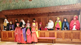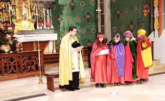 Pfarrer Konrad Roider segnete Weihrauch und Kreide und erklärte, dass das Dreikönigssingen 2025 unter dem Motto steht „Erhebt eure Stimme – Sternsingen für Kinderrechte“. Vielen Kindern in der so genannten „Dritten Welt“ gehe es nicht so gut wie den meisten Kindern in Europa, die genug zum Leben haben und eine Schule besuchen dürfen. Kinderrechte seien bei weitem noch nicht auf der ganzen Welt verankert. „Viele Gleichaltrige auf anderen Kontinenten müssen hungern“, erklärte der Pfarrer, so dass sie schon sehr früh arbeiten gehen müssten, um den Lebensunterhalt für die Familie mit zu bestreiten. Die Sternsinger sammeln also für einen sehr guten Zweck. So sprachen die Fürbitten danach vier Sternsinger abwechselnd, damit die Kinderrechte in allen Ländern künftig geachtet, geschützt und wirklich umgesetzt werden. So werden die Sternsinger in diesem Jahr wieder die Häuser mit Weihrauch segnen, singen und mit geweihter Kreide den Segensspruch C + M + B – Christus mansionem benedicat (Christus segnet das Haus) an die Haustüren schreiben.