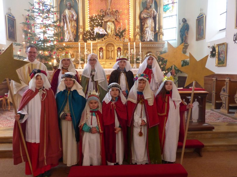 Ein knappes Dutzend Könige empfingen Pfarrer Paul Janßen und die Umrathshauser Pfarrgemeinde zum Sonntagsgottesdienst. Bei Schneegestöber und Wind zogen die Buben und Mädchen durch die alte Gemeinde Umrathshausen und sammelten für die Sternsinger. 1490 Euro brachten sie am Ende ihrer Reise mit in die Kirche Heilig Blut. Pfarrer Janßen bedankte sich bei den Kindern für ihr Engagement und bei den Umrathshausern für ihre Spendenbereitschaft.