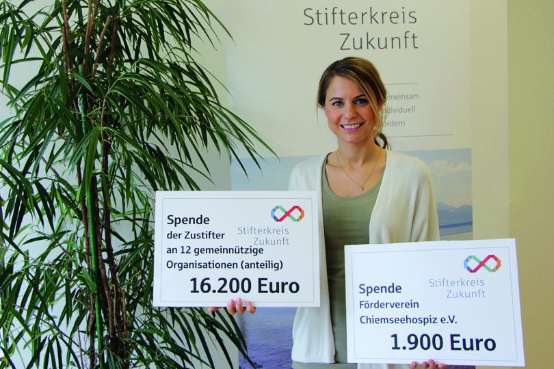 Bei der Spende von 1900 Euro handelt es sich um die jährliche Ausschüttung aus den laufenden Erträgen des Grundstockvermögens des Stifterkreis Zukunft. „Das Kuratorium und der Vorstand des Stifterkreis Zukunft haben sich entschieden, diesen Betrag an den Förderverein Chiemseehospiz e. V. zu spenden“, so Alexa Hubert, geschäftsführendes Vorstandsmitglied des Stifterkreis Zukunft. Die Freude über die unerwartete Unterstützung beim Chiemseehospiz e.V. war natürlich groß. „Wir wollen davon eine bequeme Sitzgelegenheit für unseren ‚Raum der Stille‘ anschaffen und einen Schrank, der die Utensilien für Rituale und spirituelle Begleitung aufnehmen kann“, so Ruth Wiedemann, Haus- und Pflegedienstleitung Chiemseehospiz.