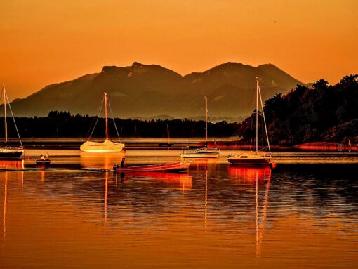 Mit diesen stimmungsvollen Bildern vom und auf dem Chiemsee dürfen wir allen Lesern der Samerberger Nachrichten ein schönes Wochenende wünschen.