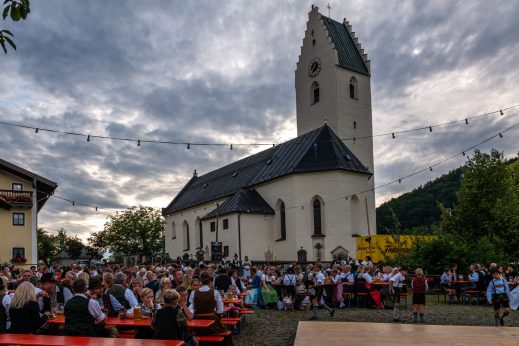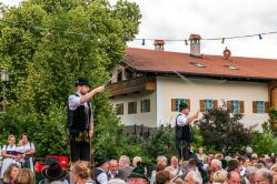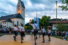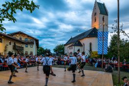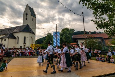 Gleich zweimal Glück mit dem Wetter hatte der Trachtenverein „Almenrausch“ Rossholzen als er in die Mitte des Dorfes eingeladen hatte. An beiden Abenden füllten sich die Sitzbänke nahe des Maibaumes und der Freibühne von Leuten, die sich an einem lauen Sommerabend ebenso erfreuen wollten wie an Weisen der Jungen Hinterberger Musikanten und der Wieslbergmusi. Dazu kamen Auftritte der Dirndl und Buam aus den Reihen der Kinder-, Jugend- und Aktivengruppe des gastgebenden Vereins sowie lautstarke Einlagen der Baschtler Goaßlschnalzer. Erfrischende Getränke von der Flötzinger-Schenke und Brotzeiten vom Grill sowie Kaffee und Kuchen rundeten das Dorffest-Angebot ab. Eine Gaudi war am zweiten Abend die Verlosung von Preisen, dabei gab es die Verlosung einer Sau sowie weitere Wein- und Bierpreise.