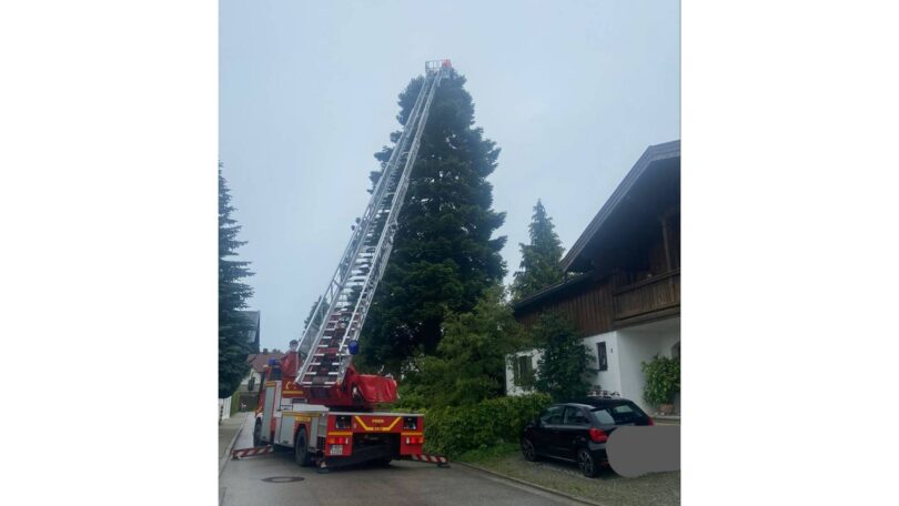 Nachdem die Rathausmitarbeiter und viele eifrige Storchenbeobachter letzte Woche gemeldet hatten, dass die Elterntiere das Nest nicht mehr anflögen und man auch die Jungtiere nicht mehr sehe, zeigten Drohnenaufnahmen, dass die jungen Störche das starke Regenwetter nicht überlebt hatten. Die Feuerwehr Prien half heute der Feuerwehr Bernau und dem Bauhof bei der Bergung der toten Störche. Gleich nach der Bergung wurde das Nest von den Elterntieren wieder in Beschlag genommen.