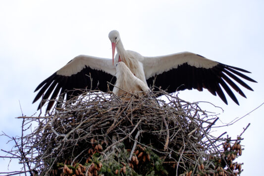 Storchenpaar nistet im Priener Kurpark