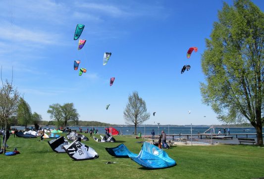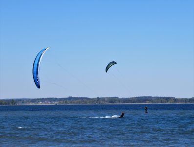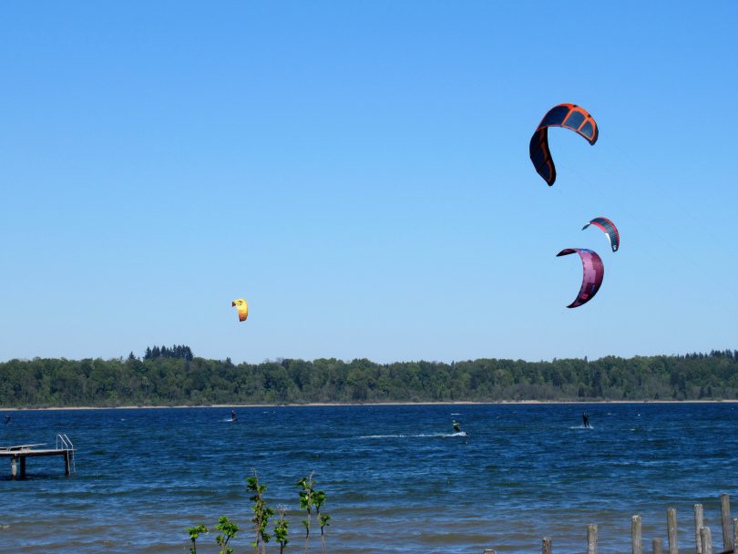 Strammer Wind lockt Kitesurfer auf den Chiemsee