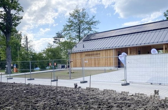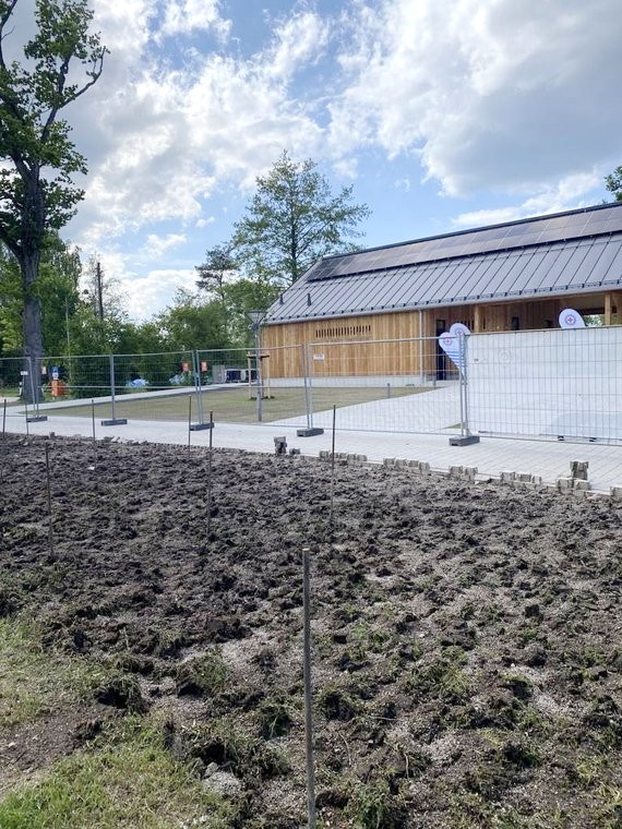 Am Strandbadgebäude in Bernau-Felden finden derzeit noch Restarbeiten an den Außenanlagen statt. Vor dem Gebäude entstehen noch zahlreiche Fahrradständer, um wieder eine klimafreundliche Anreise zu ermöglichen.