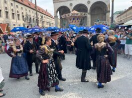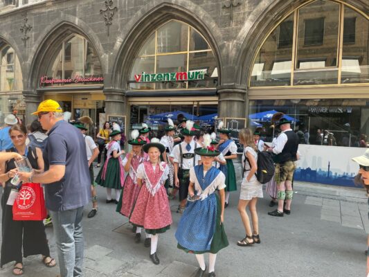 Eine weitere Veranstaltung aus Anlass des Jubiläums „140 Jahre Trachtenbewegung in Bayern“ war das Straßenmusizieren am Sonntag, 18. Juni, im Zentrum der Landeshauptstadt München.