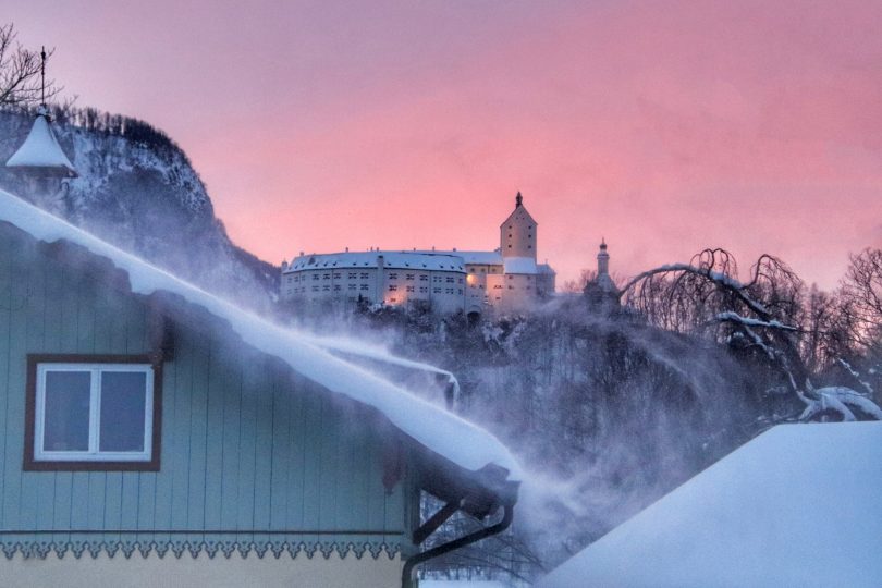 Auch wenn es mal “stürmischer” zugeht, aber: Morgenstund hat Gold im Mund. Das thronende Schloss Hohenaschau zeigt es wie es geht, sprich auch bei mal stürmischen Zeiten Standhaft bleiben. Den eigenen Blick ehrfürchtig zur aufgehenden Sonne richten und dabei Kraft schöpfen. Ja, gerade in der jetzigen Zeit schenkt einen so ein besonderer Moment wie hier in Aschau i.Chiemgau Hoffnung und Zuversicht zugleich. Diese kalte Jahreszeit bedeutet nicht nur pastellige Farben sondern auch dass sich die Natur in seiner Eigenart präsentiert. Die niedrigstehende Wintersonne mit ihrem milchigen Licht zaubert die schönsten Pastellfarben in die Landschaft des Priental.