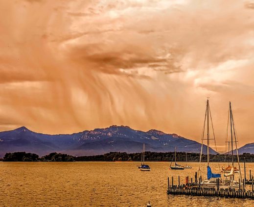 Farbenfrohe und lebfrische Bilder-Impressionen erzeugte ein jüngstes Sturmtief auf und über dem Chiemsee – wie diese aktuellen Bilder zeigen.