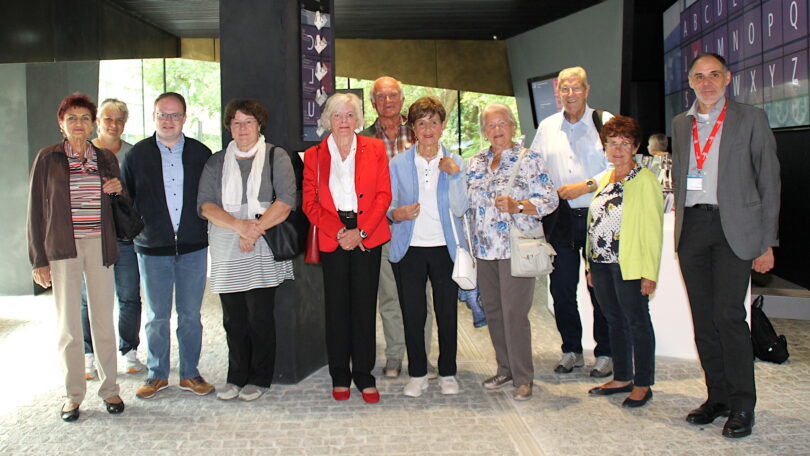 Museumsdirektor Dr. Stefan Planker begrüßte die Gruppe und erläuterte einführend die Konzeption des Hauses und den historischen Hintergrund der Sudetendeutschen. Auch in der Priener Geschichte hätten die Heimatvertriebenen eine wichtige Rolle gespielt, so Bürgermeister Friedrich. Bis heute zählten viele Bewohner der Marktgemeinde Sudetendeutsche zu ihren Vorfahren. Durch seinen Großvater mütterlicherseits, der aus Südmähren stammte, sei er den Sudetendeutschen auch persönlich verbunden. Im Anschluss besichtigte die Gruppe die Dauerausstellung des Museums, die auf rund 1.200 Quadratmetern mit zahlreichen Exponaten und modernen Medienstationen über die Geschichte und Kultur der Deutschen aus Böhmen, Mähren und Sudetenschlesien informiert. Begrüßt wurde die Gruppe ebenfalls von Prof. Dr. Andreas Weber, dem Direktor des „Haus des Deutschen Ostens“. Er stellte den Teilnehmern die umfangreichen Aufgaben, Angebote und Bildungsmöglichkeiten der Einrichtung vor.