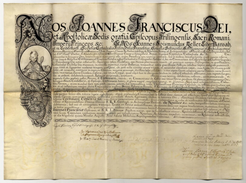 Bericht und Foto: Erzbischöfliches Ordinariat (Urkunde Korbinian)