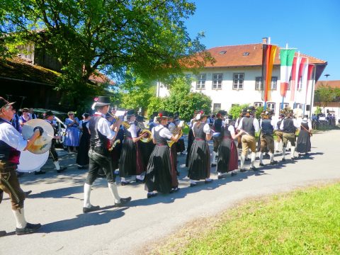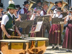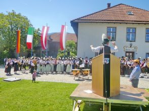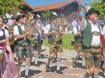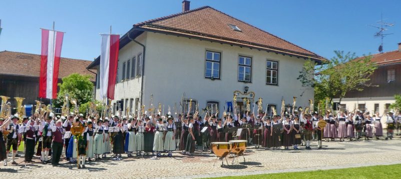 Seit Jahrzehnten pflegen die Blaskapellen von Neubeuern, Nussdorf, Rohrdorf und Samerberg eine gute blasmusikalische Nachbarschaft in Form von einem „Tag der Blasmusik“. Heuer wurde dieser Tag in Höhenmoos in der Gemeinde Rohrdorf auf dem dortigen Dorfplatz und in Festzelt vom Trachtenverein „Edelweiß“ in besonders großem Stile und bei herrlichstem Sonnenwetter begangen. Eindrucksvoll trafen beim Sternmarsch neben den vier Nachbars-Kapellen auch noch drei weitere Orchester aus den Rohrdorfer Partnergemeinden Rosate-Italien, Schattendorf-Österreich und Tarnowo Podgorne-Polen ein, die für einige Tage in der Gemeinde Rohrdorf zu Gast waren. Die Willkommensgrüße beim Sternmarsch auf dem Höhenmooser Dorfplatz nahm Rohrdorfs Alt-Bürgermeister Fritz Tischner vor. Der gemütliche Ausklang vom „Tag der Blasmusik“ war dann im Festzelt.