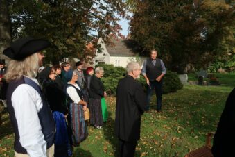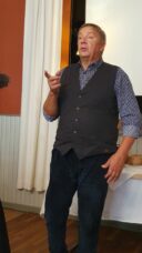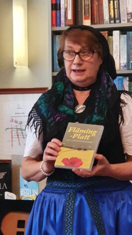 Zum Ausklang des „Tages der Tracht“ im Hohen Fläming“ unterhielt der Liedermacher Ronald Heber aus Bad Belzig. Mit seinen Mundartliedern setzt er sich für den Erhalt der einstigen Volkssprache des Flämings ein. Gekleidet in einer historischen Hochzeitslader-Tracht mit Dreispitz sang er Lieder in der einstigen Volkssprache des Flämings, dem Flämingplatt.