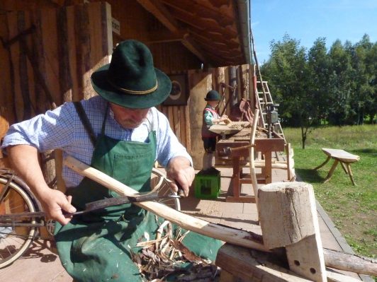 Das Angebot an bayerischem Brauchtum war am Tag des offenen Denkmals im Trachtenkulturzentrum wieder sehr groß. Ob im Pfarrhaus, im Innenhof oder bei der Kegelbahn oder am Zeltplatz. Überall waren Handwerker, Musikanten und Schuhplattler- und Schnoizergruppen und an allen Orten gab es was zu hören, zu sehen und zu bewundern. Der alte Holzbackofen wurde geschürt und für die Besucher gab es frisch gebackenes Brot. Schreiner, Schuster und Federkielsticker zeigten ihr Handwerk und die Frauen schauten zu, wie Spitzen geklöppelt wurden.