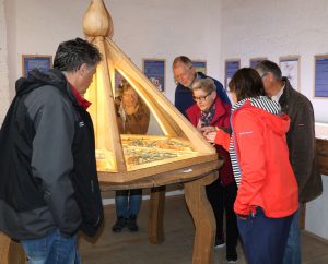 Zum „Tag des Offenen Denkmals“ präsentierte Sebastian Aringer (zweiter von rechts) der Allgemeinheit wieder einmal seine Schätze im Museum zur Frühgeschichte im Priental; ganz rechts die Vorsitzende des Aschauer Heimat und Geschichtsvereins Dr. Natascha Mehler.