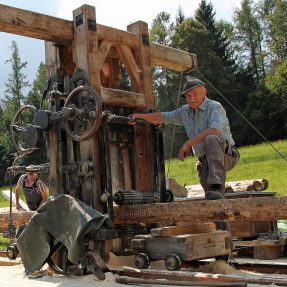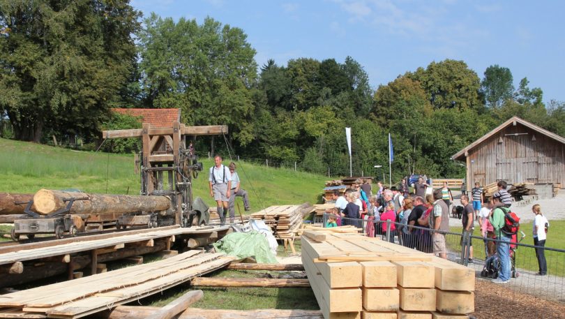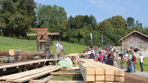 Das Freilichtmuseum Glentleiten nimmt auch heuer am deutschlandweit stattfindenden Tag des offenen Denkmals am Sonntag, 9. September, teil. Dabei legt das Museum den Programmschwerpunkt auf die Technik früherer Zeiten. Es kommt eine mobile Vollgatter-Säge zum Einsatz, die vollständig in ihre Einzelteile zerlegt werden kann und früher vor allem in abgelegenen Gegenden für den Bau von Bergbauernhöfen oder Almgebäuden zum Einsatz kam. Solche “Wandersägen” wurden oft unter großen Mühen mit Fuhrwerken, Schlitten, Tragtieren, teilweise auch mit Muskelkraft in einsame Gebirgsregionen transportiert, um Bauhölzer maschinell herstellen zu können. Die Säge an der Glentleiten ist ein Eigenbau aus der Zeit um 1930, ihr Dieselmotor bringt etwa 11 bis 14 PS Leistung.