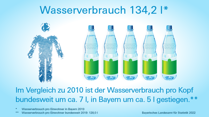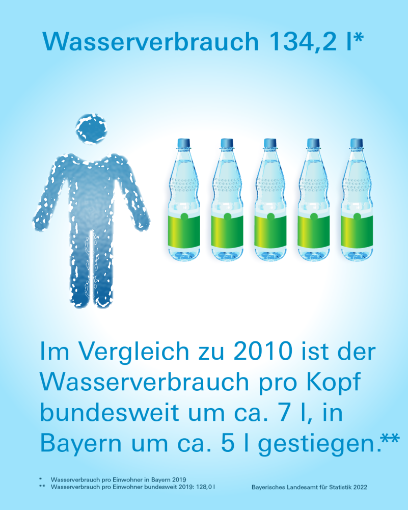 Trinkwasserverbrauch pro Kopf und Tag in Bayern von 2010 bis 2019 um mehr als fünf Liter gestiegen