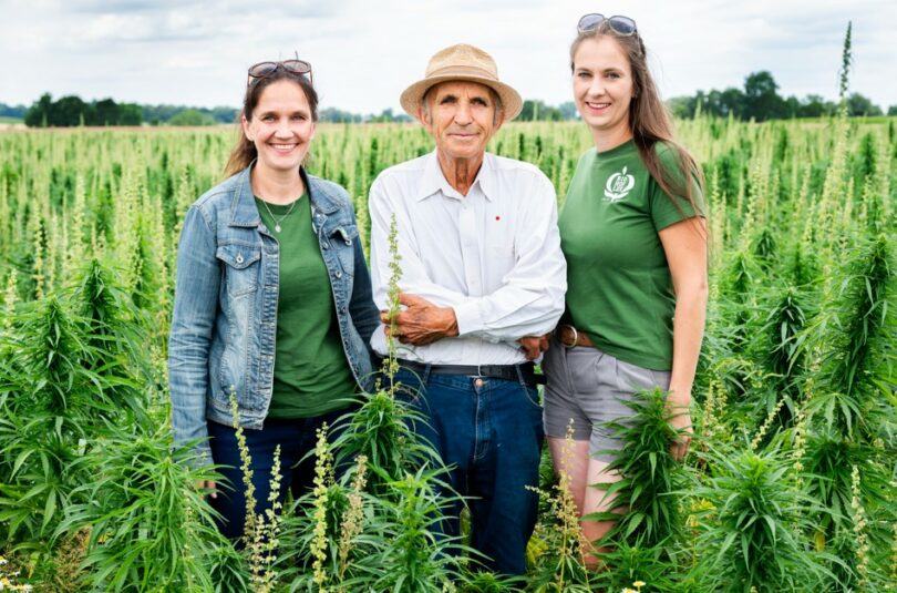 Bild 1: TAGWERK-Landwirtin und ehemalige Biokönigin Raphaela Lex (rechts) mit Schwester Bernadette und Papa Lorenz auf ihrem Hanf-Feld / Foto: Being Organic in EU
