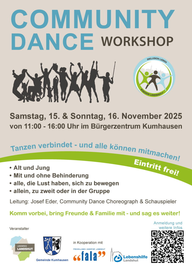 Am Wochenende des 15. und 16. November 2025 findet im Bürgerzentrum Kumhausen ein besonderer Workshop statt: Community Dance lädt alle Interessierten ein, gemeinsam Bewegung, Rhythmus und Ausdruck zu erleben.