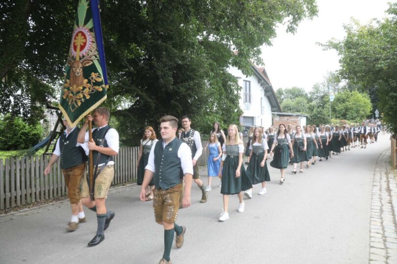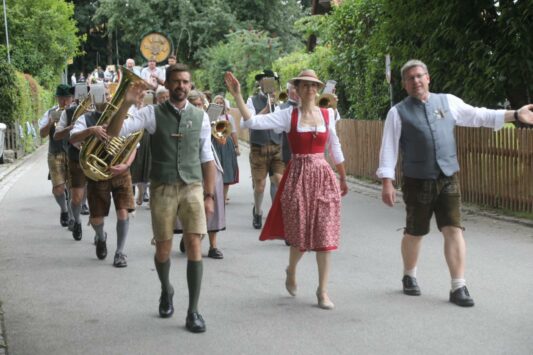 Wie bestellt war das gute und trockene Sommerwetter am Samstagnachmittag, 13. Juli, beim Wiesnauszug zum 62. Taufkirchener Traditionsvolksfest, dem zweitgrößten und schönsten im Erdinger Landkreis. Und es waren so viele – an die 2000 Teilnehmer – wie noch nie. An der Spitze war die Taufkirchener Blech, in der Zugmitte die Holzlandblaskapelle, die Buchbacher Blaskapelle sowie die Blaskapelle Veldener Blechhaufen platziert. Es folgten der prächtige Brauereiwagen sowie weitere zehn Pferdegespanne und Kutschen mit den vielen Ehrengästen.