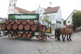 Am Auszug zur Festhalle haben sich über 65 Vereine, Schulen, Abteilungen, Verbände, Kindergärten und Gruppierungen beteiligt, eine Rekordbeteiligung im Beisein des Erdings Landrat Martin Bayerstorfer, Andreas Lenz MdB und Martin Huber MdL. Der Schirmherr und Bürgermeister Stefan Haberl zapfte mit drei wuchtigen Schlägen das Holzfass mit dem süffigen Taufkirchener Festmärzen an, und das Bier floss in Strömen. Die Ehrengäste stießen mit der Festwirtsfamilie Anton und Christian Müller aus Wartenberg auf ein gutes Gelingen des 62. Taufkirchener Traditionsvolksfestes an. Die Holzlandböllerschützen verkündeten die Eröffnung des Volksfestes lautstark auf der angrenzenden Festwiese.