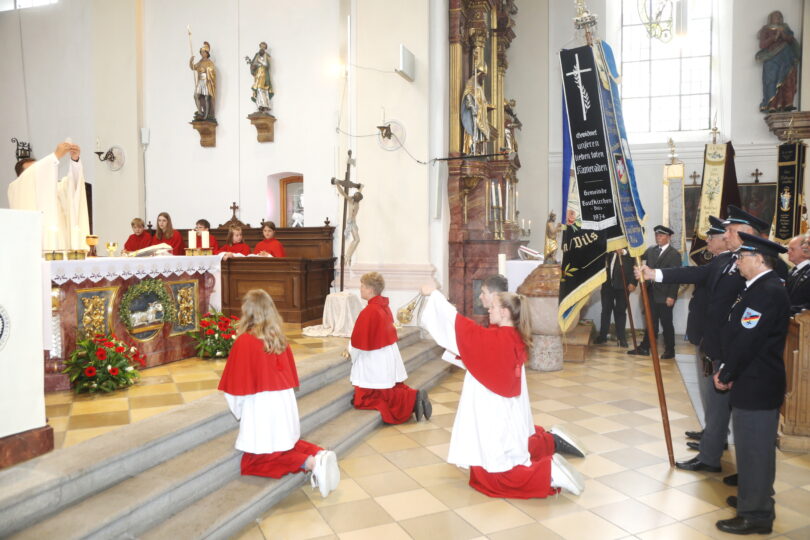 Taufkirchen. Am Sonntagvormittag, 23. Juni war ein großer Tag für die Krieger- und Soldatenkameradschaft. Mit den benachbarten Kameradschaften zusammen mit den Ortsvereinen und der gesamte Bevölkerung sein 150-jähriges Gründungsfest mit Segnung der restaurierten Vereinsfahne aus dem Jahre 1974. Mit anschließendem Gedenkakt am Kriegerdenkmal statt für die verstorbenen, gefallenen und vermissten Kameraden der beiden Weltkriege am ebenfalls renovierierten Taufkirchener Kriegerdenkmal, das im Jahre 1922 dort errichtet und eingeweiht wurde.