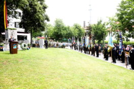 -9869 Beim Senken der Fahnen wurde aller Gefallenen, Vermissten und verstorbenen Kameraden der beiden Weltkriege gedacht.