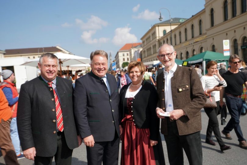 Die spätsommerlichen Temperaturen haben am gestrigen Sonntag dem traditionellen Riesen-Bauernmarkt im Herzen Münchens rekordverdächtige Besucherzahlen beschert. Tausende Besucher drängelten sich schon zur Mittagszeit durch die rund 120 Stände, um die kulinarischen Köstlichkeiten aus Bayerns Regionen zu probieren und mit nach Hause zu nehmen. Auch Landwirtschaftsminister Helmut Brunner (l.), Bauernpräsident Walter Heidl, Landesbäuerin Anneliese Göller und Münchens Kommunalreferent Axel Markwardt stürzten sich beim Eröffnungsrundgang ins Gedränge – ganz nach dem „Motto: „Schlendern, schauen, schlemmen“. Der Minister sieht den Riesen-Bauernmarkt im Herzen der Landeshauptstadt als wertvolle Gelegenheit für die Verbraucher, mit den Landwirten ins Gespräch zu kommen und sich aus erster Hand zu informieren. „Immer mehr Menschen wollen wissen, wo ihre Lebensmittel herkommen und wie sie produziert werden“, so Brunner.
