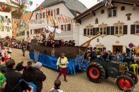 Tausende Besucher aus dem Dorf, dem Landkreis und der ganzen Region säumten den Marktplatz beim diesjährigen Faschingszug in Neubeuern. Am Nachmittag schob sich der Gaudiwurm vom Münchner-Tor aus in den voll besetzten Marktplatz. Viele aufwendig dekorierte Wägen nahmen teil, um wieder Geschehnisse aus Politik und Gesellschaft auf den Arm zu nehmen. Trommelgruppen, Mottowagen, Tänzer und aufwendige Masken wechselten sich ab, sodass die Faschingsfans immer etwas zum Schauen und Hören hatten. Die bunt und kreativ verkleideten Narren verbreiteten gute Laune und beste Stimmung bei schönsten Wetterbedingungen. Die Gilden aus Rohrdorf, Prutting, Bad Endorf sowie Bernau waren mit dabei. Das Prinzenpaar mit Prinz Fabian I. und Prinzessin Barbara I. zogen in einem großen Schiff über den Marktplatz unter dem Motto „Piraten – Fluch des Inntals und der Inngewässer“, umjubelt von Tausenden Zuschauern. Dem Schiff folgte das Begleitschiff der Jungprinzen mit dem Kinderprinzenpaar Prinz Veit I. und Prinzessin Lucia I. Hier galt das Motto „Peter Pan“.
