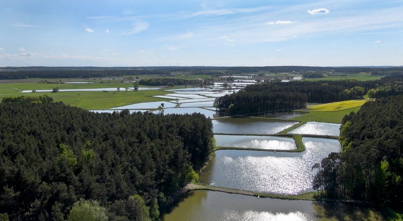 Die Erdteiche, die einen Wasserspeicher von etwa 160 Millionen Kubikmeter Wasser bilden, haben unsere Vorfahren in Handarbeit für die Fischproduktion angelegt. Aber auch aus Sicht der Wasserspeicherung für andere Zwecke können Teiche interessant sein: Teiche haben ein großes zusätzliches Potential, Wasser zu speichern und z.B. auch sommerliche Starkregenereignisse als Hochwassergefahr zu mindern. Dieses ergibt sich aus dem sogenannten Freibord (Abstand zwischen Wasserspiegel und höher liegender Oberkante eines Dammes oder Ufers) und dem durch Verdunstung fallenden Wasserspiegel im Sommer. So steht der Gesellschaft auch über das Sommerhalbjahr ein zusätzliche Wasserspeicher bei Starkregenereignissen von etwa 80 Millionen Kubikmeter zur Verfügung – ohne den Anfall von Kosten.