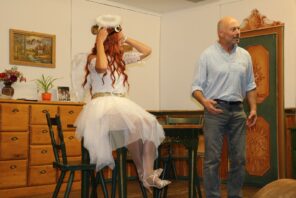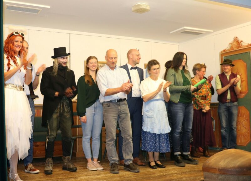 Mit wem lässt sich der Sepp, der ja offensichtlich mächtig in der Sch… hockt, schließlich ein? Mit dem Beelzebub und seinen Versprechungen oder mit dem Erzengel Michaela? Geht’s am Ende nach oben oder nach unten? Lässt sich Rosi scheiden? Kommt Vroni wieder mit ihrem Jack zusammen? Fragen über Fragen, die am Freitag, 15. November und Samstag 16. November noch einmal auf der Theaterbühne im Saal der Schlosswirtschaft Wildenwart gelöst werden. Das Premierenpublikum hat sich „gar köstlich amüsiert“ über die gelungene Vorstellung. Häufiger Zwischenapplaus und viel Gelächter bildeten das Brot der Künstler – vor allem Hauptdarsteller Sepp Stemmer (Georg Aicher), der Boandlkramer (Ludwig Freund), der Beelzebub (Thomas Freund) und Erzengel Michaela (Christine Gau) erhielten viel Lob und Anerkennung. Souffleuse Sabine Till verlebte einen ruhigen Abend in ihrem Kasten. Mit einem langen Schlussapplaus wurden die Akteure auf der Bühne vom begeisterten Publikum für ihre schauspielerischen Leistungen belohnt. Die gelungene Aufführung war ein voller Erfolg für die Wildenwarter Theaterer.