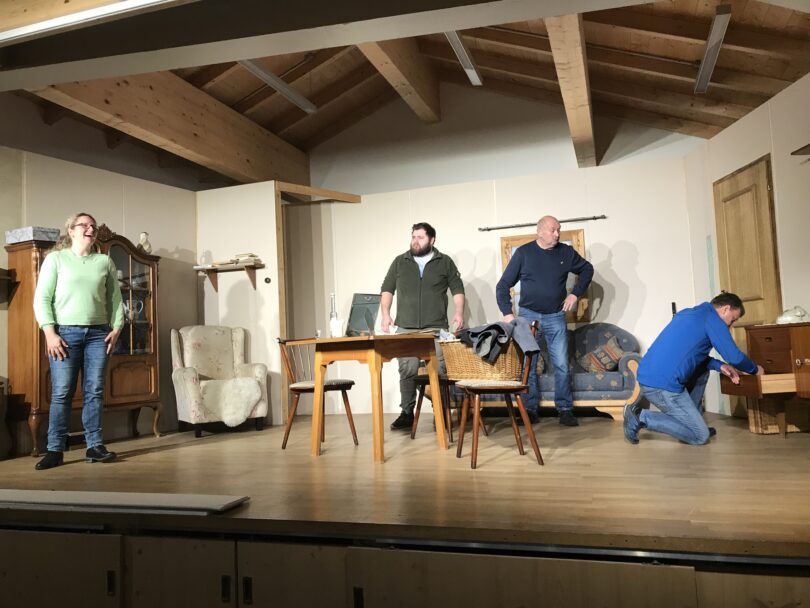 Die Proben für das diesjährige Theaterstück des Trachtenvereins Truchtlaching laufen auf Hochtouren und sowohl die Bühne als auch die Kostüme nehmen langsam Gestalt an. Die Spieler um Spielleiter Peter Holzner, der sich auch maßgeblich um die Bühnenausstattung kümmert, sind mit Begeisterung bei der Sache und freuen sich schon, die feinsinnige und kurzweilige Komödie „Da Himme wart ned“ dem Publikum präsentieren zu können.
