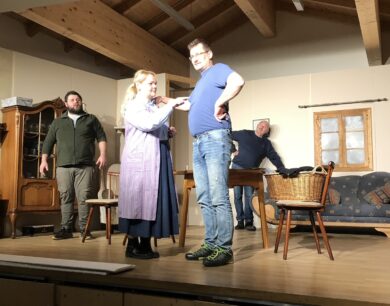 Die Proben für das diesjährige Theaterstück des Trachtenvereins Truchtlaching laufen auf Hochtouren und sowohl die Bühne als auch die Kostüme nehmen langsam Gestalt an. Die Spieler um Spielleiter Peter Holzner, der sich auch maßgeblich um die Bühnenausstattung kümmert, sind mit Begeisterung bei der Sache und freuen sich schon, die feinsinnige und kurzweilige Komödie „Da Himme wart ned“ dem Publikum präsentieren zu können.