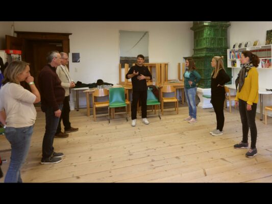 Improvisationstheater war das Thema der Seminarteilnehmer am zweiten Tag im Schloss Reichersbeuern. Dazu leiteten die Schauspiel-Profis Klaus Steinbacher jun., Alessandro Visentin und Tom Ditz an und viele interessante Tipps wurden von den Teilnehmern mit nach Hause genommen. Eine Fortsetzung der Theaterspielkurse wird einmal jährlich im Kulturzentrum Holzhausen stattfinden (Vorankündigung im Programm des Trachtenverbandes).