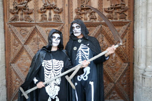 gestaltet, einer von Altöttings Traditionsvereinen. Die detailliert ausgearbeiteten Szenen und die liebevoll gestalteten Kostüme machen die Kreisstadt auf eine neue Art erlebbar. Teilnehmende tauchen ein in die Geschichte der Wallfahrtsstadt und erleben hautnah, was es heißt, der Tod z’Eding zu sein oder wie der