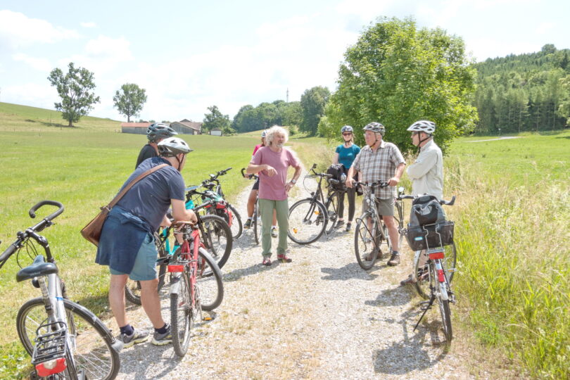 Das Amt für Ländliche Entwicklung Oberbayern (ALE) veranstaltete am vergangenen Samstag bei Kaiserwetter gemeinsam mit dem Erlebnispädagogen und Landschaftshistoriker Ludwig Bertle vom Deutschen Alpenverein (DAV) im Pfaffenwinkel im Landkreis Weilheim-Schongau eine Radltour der besonderen Art. In mehreren Stationen erfuhren die Radfahrerinnen und -fahrer wie Kulturlandschaft und Klimaschutz zusammenhängen.