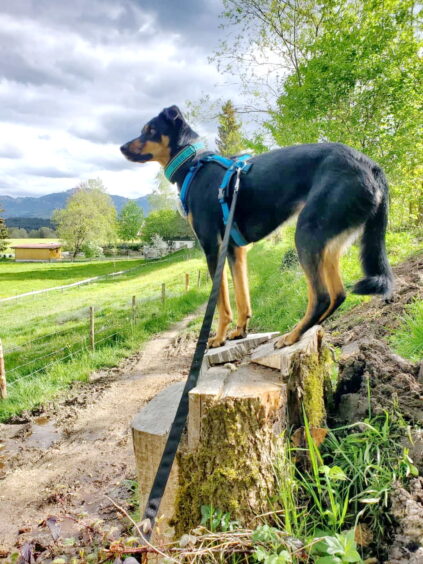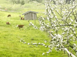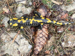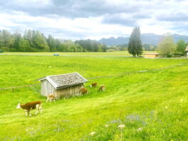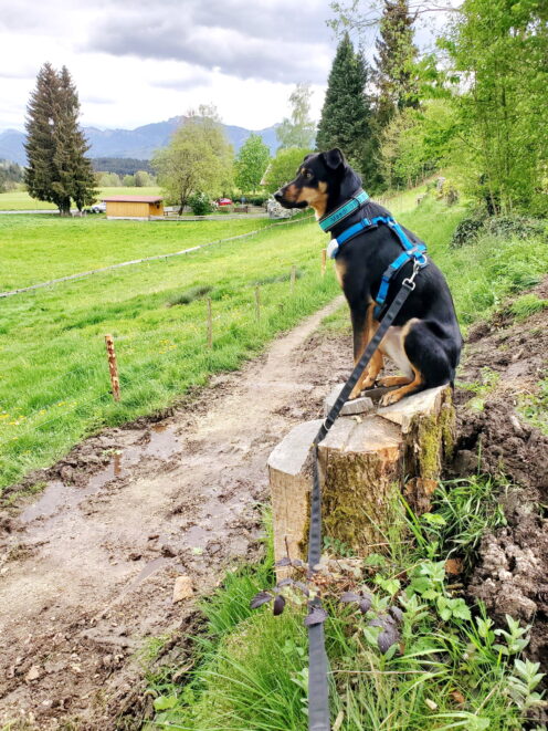 Wie unsere jüngsten Aufnahmen nach sonnigen Tagen und wieder erstem Regen zeigen, präsentiert sich der geschichtsreiche Weg als Teil des alten Salinweges von Traunstein nach Rosenheim in einem besonders satten grün. Das genießen auch Wanderfreunde mit ihren Vierbeinern, aber auch Katzen, Kälber und bei gewisser Regennässe auch Feuersalamander.