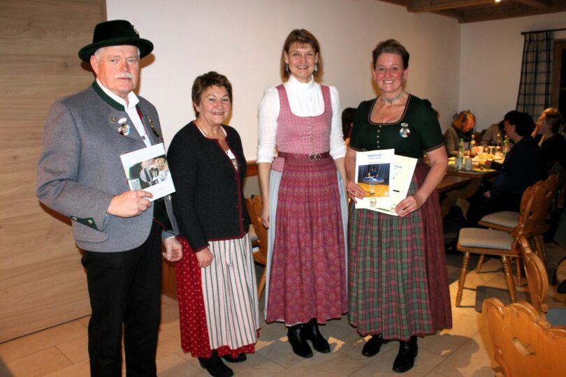 Dazu gehörte Elisabeth Gasteiger, Goldschmiedemeisterin aus Warngau, die das richtige Putzen und die Pflege von Halsketten, Haarnadeln, Ohrringen und anderen Accessoires aus Metall und Perlen ausführlich erklärte. Anlass zur Diskussion gab dabei die Halskette, die teils von einer Generation an die nächste weitergegeben wird. Wie die Referentin sowie Sebastian Gasteiger (Lerl Wast), Ehrenvorstand und Trachtenwart vom GTEV „D´Jenbachtaler“ Bad Feilnbach sowie ehemaliger stellvertretende Vorstand im Gauverband1 ausdrücklich betonten, sei diese besondere Schmuckstück eine „Halskette“ und keine „Kropfkette“, wie sie in manchen Trachtenvereinen diskriminierend und frauenfeindlich gegenüber den Trägerinnen immer noch bezeichnet wird.