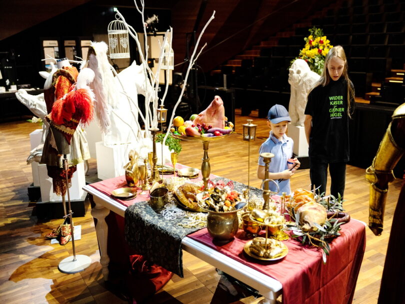 Was gibt es zu erleben: Ausstellungen verschiedener Abteilungen locken in die Foyers des Festspielhauses. Aus nächster Nähe sind Kostüme, Perücken und Requisiten zu bestaunen und im wahrsten Sinne des Wortes zu begreifen. Führungen zu verschiedenen Themen und in unterschiedliche Bereiche des Gebäudes werden mehrmals am Tag angeboten. Besonders für technisch Interessierte lohnt sich der Besuch auf der Bühne und der Seitenbühne sowie bei den Kolleg:innen in der Fertigungshalle, wo Mitarbeiter:innen u. a. Bühnen, Audio- und Videotechnik erklären und präsentieren. Auch wo und wie all die Kostüme für die Opernproduktionen der Festspiele entstehen, wird anschaulich vorgeführt – und auch, wo sie aufbewahrt werden, nämlich im Fundus.