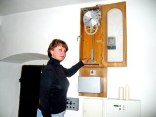 Fotos: Hötzelsperger – 1. Pfarrkirche „Mariä Himmelfahrt“ in Törwang 2. Die Putz-Frauschaft der Törwanger Pfarrkirche 3. Mesnerin Christa Schmid bei der Uhr-Aufziehung