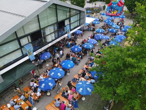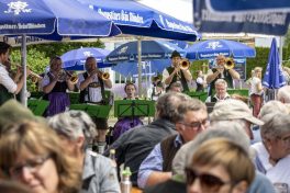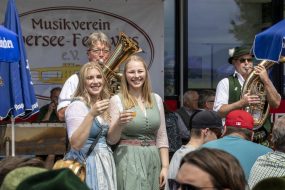 Das Familienfest begann um 10:00 Uhr mit einem blasmusikalischen Frühschoppen. Bei einem gemütlichen Weißwurstfrühstück mit herrlicher musikalischer Unterhaltung durch die Blaskapelle Übersee-Feldwies konnten die ersten Gäste bestens in den Festtag starten. Neben zünftiger bayerischer Blasmusik, waren auch manche Stücke aus dem letzten Frühjahrskonzert zu hören. Anlässlich des Vatertags hatte der Vater des Dirigenten Thomas Lindlacher bei seinem Sohn ein Wunschstück frei und so wurde kurzerhand das beliebte Medley „Moment for Morricone“, aufgelegt, welches auch in diesem Rahmen großen Anklang fand. Um 12:30 Uhr übernahmen die Nachwuchsgruppen des Musikvereins die musikalische Umrahmung. Neben der Jugendblaskapelle Übersee (Leitung: Lothar Beyschlag) und dem Schülerorchester (Leitung: Dani Küfner) hatte auch das Erwachsenen-Ensemble, welches seit September 2019 besteht, seinen ersten offiziellen Auftritt unter der Leitung von Lothar Beyschlag. Dies freute insbesondere den ersten Vorstand Christian Kroner sehr, da in den letzten zwei Jahren aufgrund von Corona leider keine Auftrittsmöglichkeiten gegeben waren. Für den starken Auftritt der drei Nachwuchsensembles bedanken wir uns sehr. Nachmittags begleitete die kleine Besetzung der Blaskapelle den Biergartenbetrieb mit einem fulminanten Auftritt. Mehr und mehr Besucher wurden an das Musikheim gelockt, sodass das geplante Festende um einige Zeit nach hinten verschoben wurde.