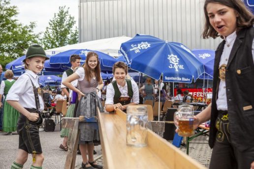 Obwohl das Fest „Vatertagsfest“ heißt, war nicht nur für Väter, sondern auch für die Familien einiges geboten. Die Jugend des Musikvereins veranstaltete das beliebte „Maßkrugschiam“, und betrieb eine bunte Hüpfburg sowie eine mobile Holzkegelbahn, bei der Alt und Jung ihr Geschick beim Kegeln unter Beweis stellen konnten. Auch für das leibliche Wohl war bestens gesorgt: Neben deftigen Bratwürstl mit Kraut und bayerischen Brotzeitklassikern gabs auch die begehrten Steckerlfisch‘ vom Hintereder Klaus zum Essen. Nachmittags lud das vielfältige Kuchenbüffet die zahlreichen Besucher zum Verweilen ein.