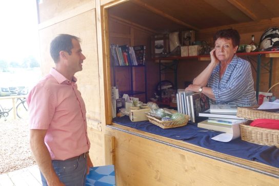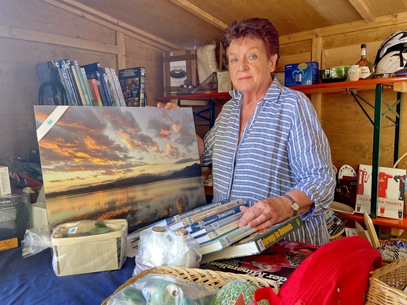 Foto: Hötzelsperger –  Helga Stampfl hat bereits Quartier in der Hütte am Festzelt bezogen. Dort sind an den Veranstaltungstagen auch noch Lose erhältlich und dort werden auch die Gewinne ausgegeben.