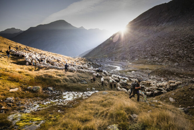 Eine besondere Grenzüberschreitung und eine rund 6.000 Jahre alte Tradition ist der Schafwandertrieb, auch Transhumanz genannt, in den Ötztaler Alpen. Über 5.000 Schafe aus dem Südtiroler Schnalstal werden von der trockenen und dürren Nordseite der Alpen alljährlich über die Jöche der Ötztaler Alpen nach Vent getrieben, um den Sommer auf den saftigen Hochweiden zu verbringen. Der Schaftrieb verläuft dabei über das Timmelsjoch (2.494 m), das Hochjoch (2.885 m) und das Niederjoch (3.017 m) und gilt damit als die einzige grenzüberschreitende Transhumanz in den Alpen, die über Gletscher führt. Über viele Generationen hinweg haben sich dabei verwandtschaftliche, soziale und kulturelle Beziehungen zwischen den Menschen in Südtirol und Tirol entwickelt, was sich in alten Ritualen und Bräuchen, die noch heute ausgeübt werden, widerspiegelt. Da die Ötztaler Transhumanz eine so einzigartige Überlieferung ist, steht sie seit 2011 sogar im UNESCO-Verzeichnis des immateriellen Kulturerbes Österreichs.