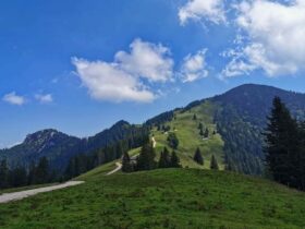 Die Tour:  Vom Parkplatz der Sesselbahn aus folgen wir der Forststraße, die zuerst südlich des Parkplatzes verläuft und dann nach Westen aufwärts führt. Nicht den Schotterweg nehmen, der rechts der Talstation beginnt (steiler Umweg). Nach 1,1 km, auf einer Höhe von ca. 720 m, biegen wir bei der Gabelung links ab. Ab jetzt verlässt uns auch ein Teil der Wanderer, da die meisten weiter zur Staffn-Alm gehen. Nun folgen wir immer den Wegweisern zur Piesenhausener Hochalm. Der Weg führt kontinuierlich nach oben. Nachdem wir nach knapp 2 Stunden Aufstieg den Wald verlassen, erreichen wir die Hochplattenalm auf 1320 m. Bisher befanden wir uns nur auf einer Forststraße, aber nun verlassen wir diese gleich nach dem ersten Gebäude in eine steilen Steig. Wenige Minuten später kreuzen wir wieder die Forststraße und folgen dem Steig weiter bergauf. Auf diesem kann ein wenig Trittsicherheit nicht schaden. Er wendet bald nach rechts und führt ab hier in einer Viertelstunde zum Gipfel der Hochplatte.