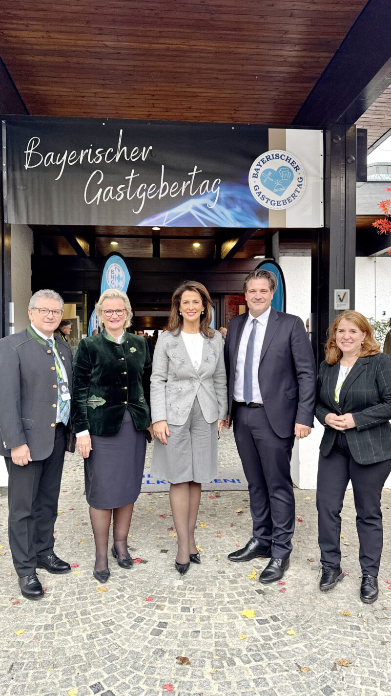 Bericht: Bayerisches Landwirtschaftsministerium / Foto: Judith Schmidhube / StMELF – Bild zeigt Staatsministerin Kaniber gemeinsam mit (v.l.n.r.) Andreas Brunner, 2. Vizepräsident DEHOGA Bayern, Angela Inselkammer, Präsidentin DEHOGA Bayern, Dr. Thomas Geppert, Hauptgeschäftsführer DEHOGA Bayern sowie Michaela Schmitz-Guggenbichler, Vorsitzende des Fachbereichs Gastronomie.