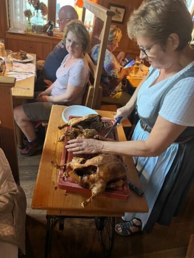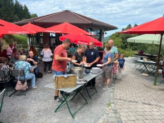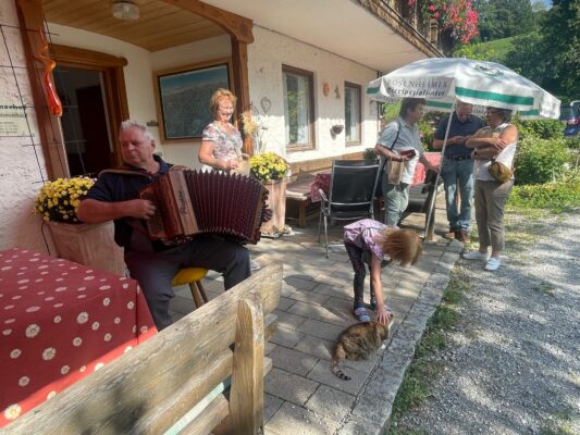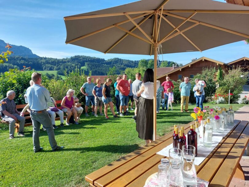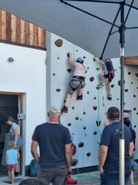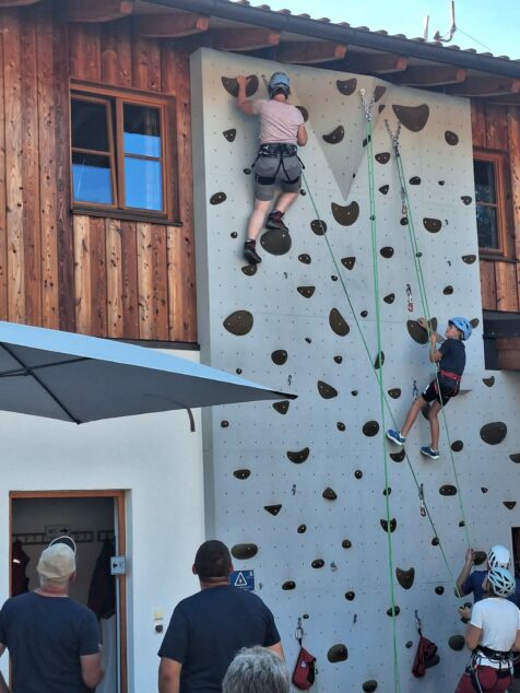 „Die Hasselbacher waren in all den bisherigen Jahren schon mit dem Liederkranz, mit einem Kinderchor, mit den Bürgermeistern und mit Leserreisen auf den Samerberg, dieser ist inzwischen ein beliebtes Ferienziel für viele Stammgäste geworden“ – so Stefan Mühle als Ehrenvorsitzender der FFW Hasselbach beim gemeinsamen Weißwurst-Frühschoppen mit Ziachmusik beim Berggasthof Duftbräu. Weitere Stationen und Programmpunkte waren eine Fahrt auf die Hochries mit Wandertour zur Käseprobe beim Lochnerhof, ein Abend beim Entenwirt, eine Schnapsprobe auf dem Mayerhof in Schilding sowie der Besuch des Tages der offenen Tür bei der Bergwacht Rosenheim-Samerberg. Dort versuchte sich vor allem die Jugend aus der Reihe der Bus-Gesellschaft an der Kletterwand.